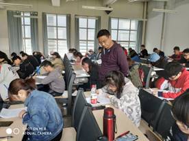 2019年4月21日上午9点,beat365中文官方网站EU英语协会在承基楼举办了CET-4模拟考试。我院公共外语教研室主任杨伟超老师应邀指导EU英语协会的考前准备工作,并负责批改本次模拟考试卷作文部分。