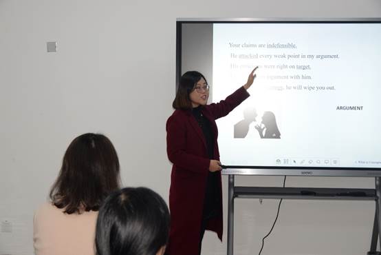 王丽娟老师通过示范课的形式展示了《大学英语III》第一单元Hero and Courage中如何通过引用习近平在“全国抗击新冠肺炎疫情表彰大会”上的讲话精神,将英雄主义思想和大爱无疆的博爱精神渗透到大学英语课程中;赵楠楠老师以说课的形式梳理了大学英语I第六单元Family中的核心价值观,并结合习近平总书记在《习近平谈治国理政》第二卷中关于怎样看待家庭、家教和家风及其相互关系问题的专门论述,使学生认识到家庭的重要性。李海燕老师从中外文化对比的角度,带领学生深刻理解中国文化的源远流长和汉语的博大精深,增强了同学们在跨文化交际中的自信,展示了《跨文化交际》这门课程在思政育人中的重要作用;刘娲路老师以《语言学导论》概念隐喻这一章的内容为例,阐述了英汉两种语言中存在的大量概念隐喻,并结合我校防震减灾校本特色,以人类抗击自然灾害为例,用深入浅出的例子,帮助学生理解概念隐喻,不仅达到了传授知识的目的,而且在思政育人形式上做到了显隐结合,润物细无声。在聆听了以上四位教师的公开课后,学院全体教师展开了讨论,学习了四位教老师的示范课的思政亮点,同时也指出了改进方向,大家纷纷表示受益良多。