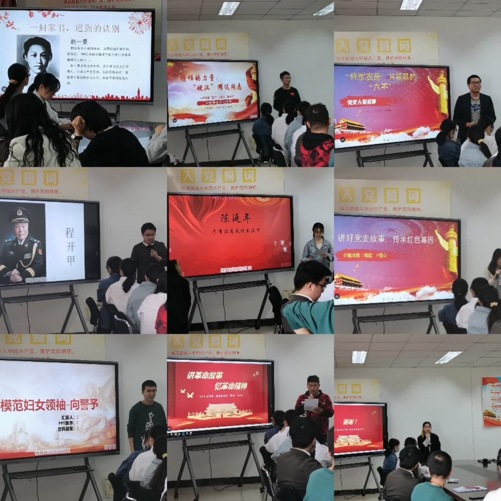 经过前期精心准备,学生党支部的8组党员将一个个感人至深的故事娓娓道来,赵一曼的“一纸家书、一道绝笔”,让我们看到了她那义无反顾、为党为人民献出生命的大无畏精神;扶贫硬汉隋耀达,用默默坚守,书写了帮助农民脱贫致富的美丽篇章;满腔赤诚洒边疆的农民将军甘祖昌,为人民的幸福鞠躬尽瘁,不忘宗旨、不恋官位;中国“核司令“人民科学家”程开甲,以及“献身国防科技事业的杰出科学家”林俊德,一生为国铸核盾,一世甘做淡泊人,他们用生命谱写信仰,用大爱诠释了对国对党的忠诚;革命烈士陈延年、陈乔年兄弟,为新中国抛头颅、洒热血,慷慨赴死;中共第一位女中央局委员向警予,为妇女解放、为劳动大众解放、为共产主义事业奋斗了一生;开国元帅刘伯承,一生戎马,战功卓著,为中华民族的自由和解放,征战沙场,九死一生;还有“四有书记”谷文昌, 信仰如饴、赤心存道的陈望道。