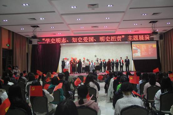 为庆祝中国共产党成立100周年,庆祝新中国成立72周年,教育引导广大青年学生加深对党史、新中国史、改革开放史和社会主义发展史的认识,激发爱国热情,弘扬爱国主义光荣传统,11月4日16:00,beat365中文官方网站学生党支部在主楼328举办了“学史立志、知史爱国、明史但责”主题文艺展演活动,党总支书记王建富、院长池丽霞出席了此次活动,部分教师党员、青马班学员、入党积极分子和部分学生共计100余人观看了此次演出。