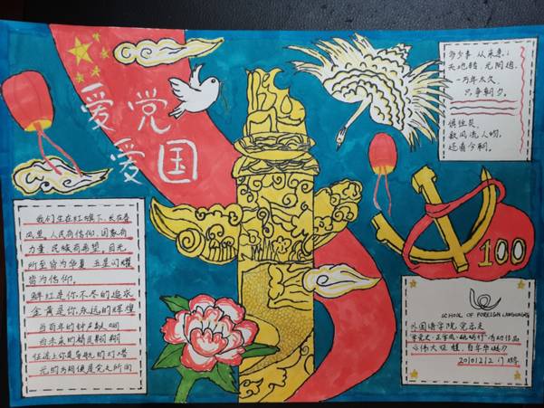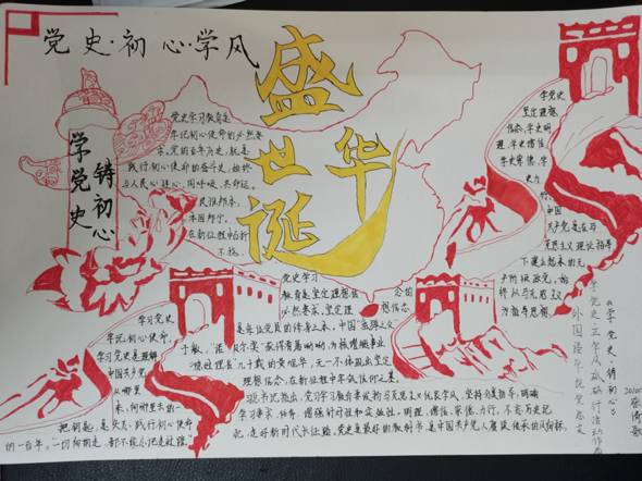 为了进一步扎实推进党史学习教育,引导广大入党积极分子厚植爱党、爱国、爱社会主义情怀,beat365中文官方网站党总支组织入党积极分子开展了“学党史,悟思想,正学风”手抄报活动。本次活动共收到作品30余幅,展示了中国共产党的光荣历史,中国翻天覆地的变化,当代青年积极向上的精神风貌。同学们将国旗、党旗、天安门、长城、华表、和平鸽这些经典图案和地标建筑绘制在一幅幅精美的手抄报上,表达了对党和国家的热爱,彰显着当代青年坚定理想信念,勇担时代使命,积极发挥先锋模范作用的赤诚之心。