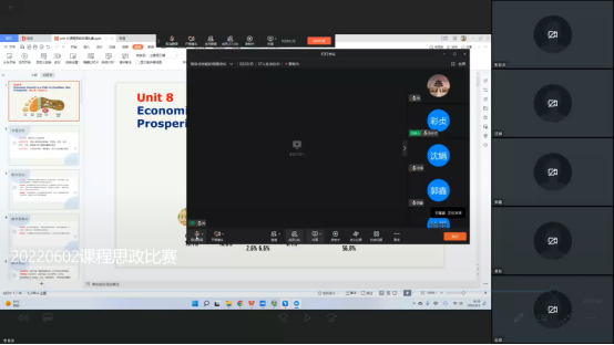 参赛教师坚持正确价值导向,将思政内容融入大学英语公共基础课、英语专业课程中,找准切入点和立足点,精心设计参赛课程及课程辅助材料,使课程教学与思政教育有机融合。郭鑫老师选取大学英语IV第五单元Values主题,从价值观的定义及特点引出不同文化下的价值观的异同,并结合疫情等时事,详细讲解了个人主义和集体主义价值观的不同;罗佳琳老师从写作的角度讲解了隐喻的类型,引用名人名言及习近平总书记的演讲来揭示比喻等修辞格如何在写作中更生动表达写作内容;高丽梅老师以个人价值观为切入点,用疫情中涌现出来的平民英雄为例,传达了普通人也能不平凡的价值观,并以此为切入点引导学生思考如何用英语讲好平民英雄故事,传递好中国声音。李海燕老师选取了英语阅读课中“移民文化”主题的文学作品,分析“冷幽默”写作手法对于主人公乐观积极性格特点的揭示,并从移民文化引出中国梦与美国梦价值观差异的对比,结尾用袁隆平的“禾下乘凉梦”英文采访来展示美好的中国梦。安蕾老师选取了大学英语IV第七单元的主题Career,引用乔布斯等名人的演讲及故事,来鼓励学生在职业选择上要遵从自己的内心。李恩庆老师依据学生缺乏跨文化交际方面,对中西方文化了解不多等方面,基于产出导向法,设计了阅读、听力、讨论等任务,使学生能够立足中国,用英文去表达中国在环境保护方面所做的努力及体现的大国担当。比赛结束后,学院全体教师投票确定了参加校级比赛的教师,投票结果在学院内进行了公示。