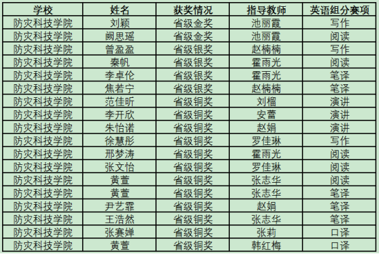 近日,2023河北省高等学校“世纪之星”“外研社·国才杯”“理解当代中国”全国大学生外语能力大赛河北赛区系列赛事的决赛落下帷幕。我校学生在系列比赛中获得佳绩,荣获省级金奖两项、银奖四项、铜奖十二项,获奖人数再创新高。其中英语专业学生阙思瑶和刘颖分别获得英语阅读大赛金奖和英语写作大赛金奖。