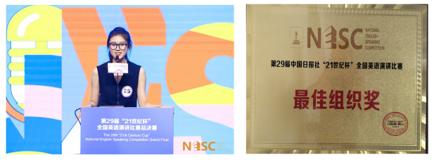 近日,由中国日报社、21世纪英语教育传媒举办的第29届中国日报社“21世纪杯”全国大学生英语演讲比赛全国总决赛在江苏无锡举行。我校22级本科生朱怡诺同学荣获全国总决赛二等奖,刷新了我校在该项赛事中的最佳成绩纪录。