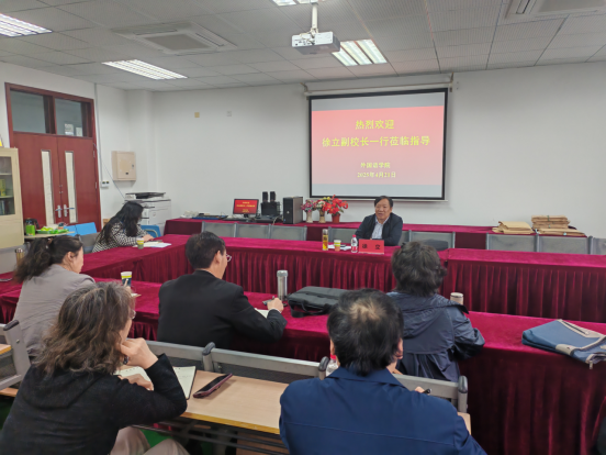 4月21日,学校联合党委常委、副校长徐立到beat365中文官方网站开展调研座谈,对翻译硕士点申报及学科建设进行了深入指导和交流,beat365中文官方网站党政领导、各系科室中心主任参加会议。