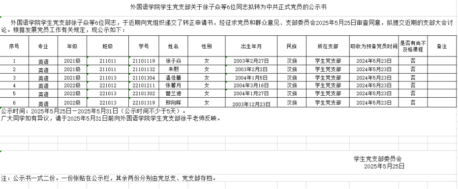 beat365中文官方网站学生党支部关于徐子焱等6位同志拟转为中共正式党员的公示书