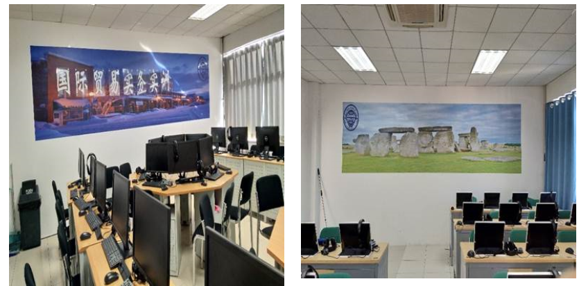 10层:1001实验室装有先进的Simtrade外贸实习平台(2020年12月升级),1004实验室配置有投影仪和幕布以满足多样教学需求,1004、1006、1008实验室均配有八角形桌,方便实现学生小组交流,适合英语笔译、口译等教学活动。